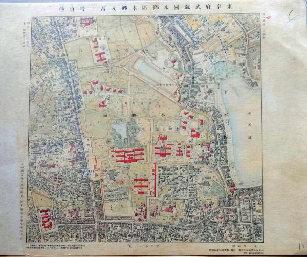 復刻明治東京彩色地図 本郷区本郷元富士町近傍 明治16年・参謀本部「五千分一東京図測量原図」昭和59年発行〇和本古書古文書