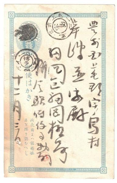 エンタイア はがき 博多ボタ 二重丸印 1枚 18 12 4 イ