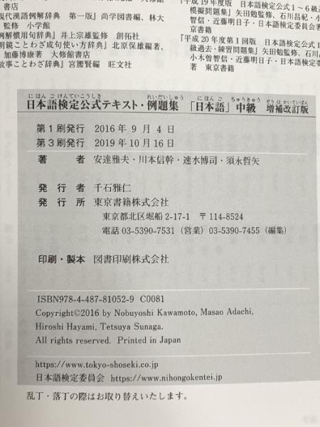 日本語検定公式テキスト・例題集 「日本語」中級 増補改訂版 東京書籍 速水 博司