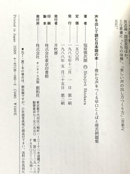 声を出して読む日本語の本: 豊かな声をつくる早口ことばと滑舌例題集 創拓社出版 塩原 慎次朗