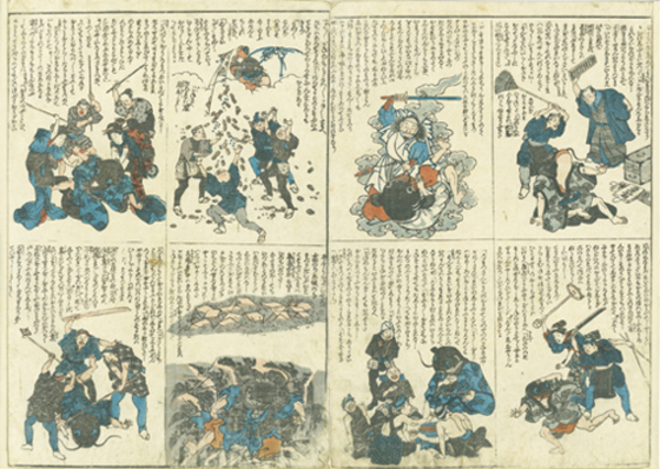 地震小咄(金貨と鯰・鹿島大明神と鯰・芸人と鯰・職人と鯰、金をまく鯰と職人・女郎にこらしめられる鯰・地底の地震鯰・芸人にこらしめられる鯰)
