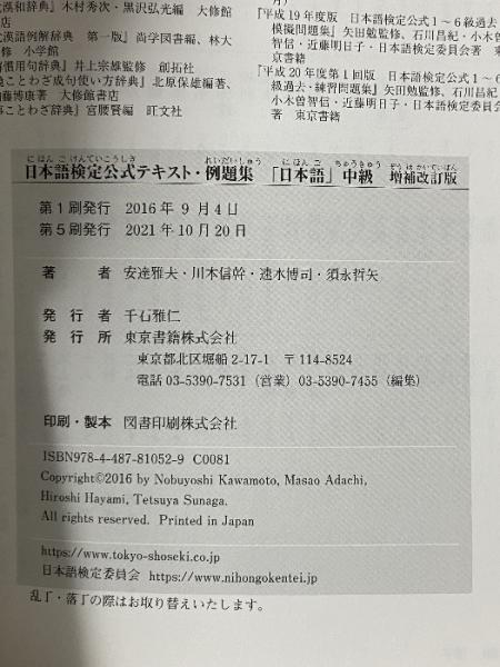 日本語検定公式テキスト・例題集 「日本語」中級 増補改訂版 東京書籍 安達 雅夫