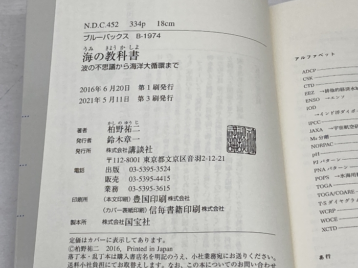 海の教科書 波の不思議から海洋大循環まで (ブルーバックス 1974) 講談社 柏野 祐二