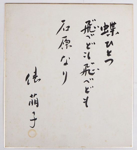 俵萠子色紙 『蝶ひとつ飛べども石原なり』 毛筆書落款入 少シミ有