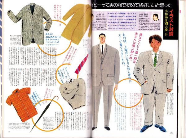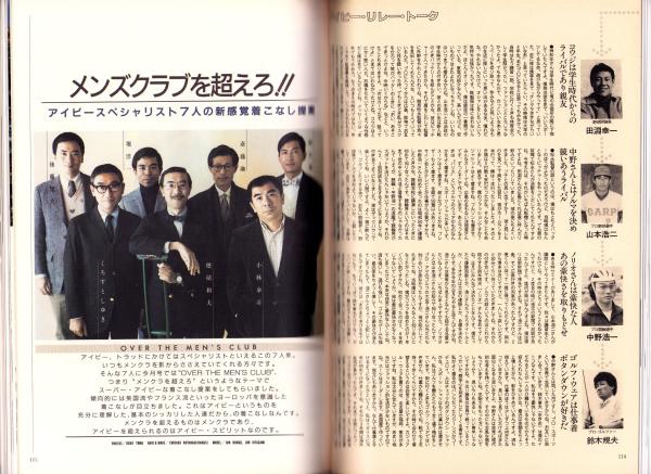 • 著者 〈街のアイビーリーガース -京都の巻-〉〈チャート式ニューベイシック図典〉〈大人のアイビー着こなしポイント7〉〈アイビー・パターン用語辞典〉〈伝統派のアイビー・カット〉〈コロンビア大学のファッション最前線〉〈イラスト対談「アイビーって男の服で初めて恰好いいと思った」小林泰彦VS大橋歩 4頁〉〈アイビーは上野から始まった〉〈東理夫「MCショート・フィクション 南青山探偵事務所(1)」〉、浜田容子、小久保彰、くろすとしゆき