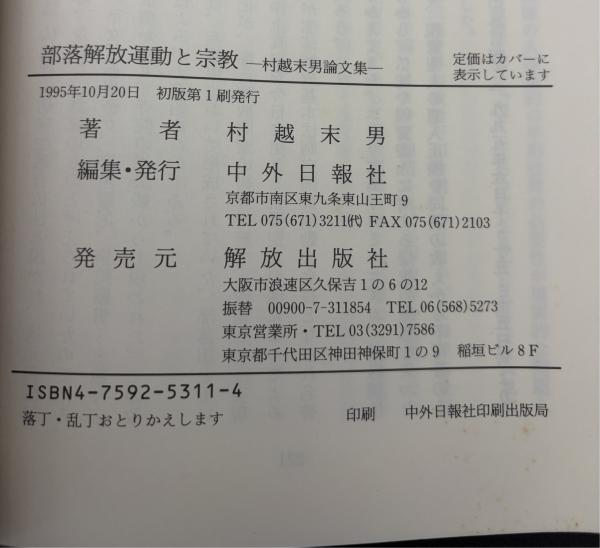 部落解放運動と宗教 : 村越末男論文集