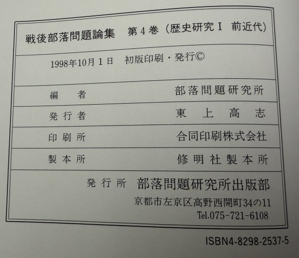 戦後部落問題論集 第4巻 (歴史研究 1(前近代))