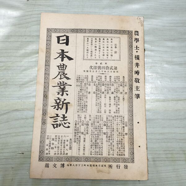 1_ 日本農業新誌 博文館 横井時敬 明治26年 1893年 第2巻第24号 臭いあり 230256