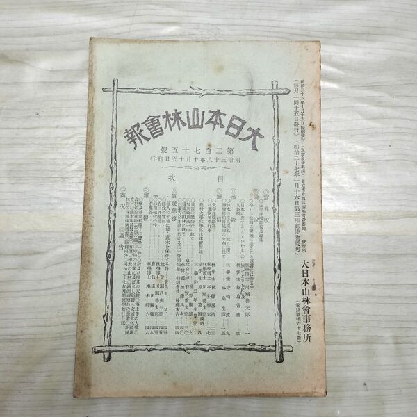 1_ 大日本山林会報 第275号 明治38年 10月 1905年 材木 林業 臭いあり 270096