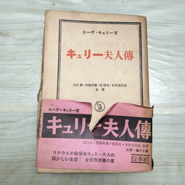 1_ キュリー夫人伝 エーヴキュリー 川口篤他 白水社 昭和14年 1939年 臭いあり 010092