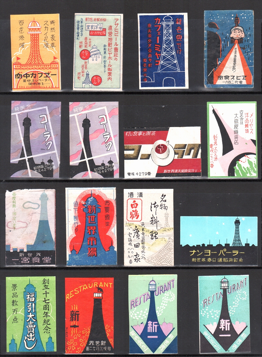 • 解説 大阪・新世界の通天閣を図案にしたマッチラベル16枚一括。