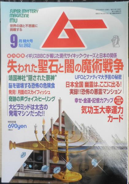 大幸運力カード付き 総力特集/失われた「聖石」と闇の魔術戦争 マンモスを超える史上最大の陸上哺乳類/バルキテリウム 脳を破壊する恐怖の危険食 奇跡の「気功玉」 実録!!恐怖の悪霊マンション 幽霊は、ここに出る! UFOとファティマ大予言の秘密 大ピラミッドは太古の発電マシンだった!! 他