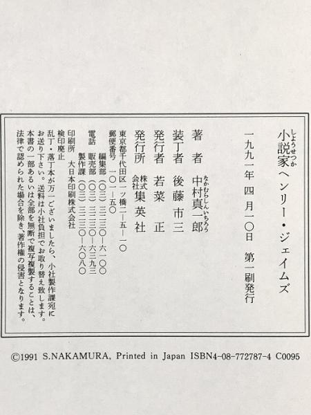 小説家ヘンリー・ジェイムズ 集英社 中村 真一郎