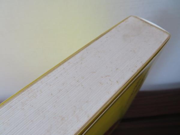 例1:「カバー 帯 ヤケ 小口汚れ」 ⇒ カバーと帯が付いており、全体的にヤケが、小口に汚れがある。書込みや印などは無い。その他は古本として経年並みの状態。