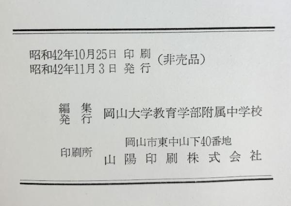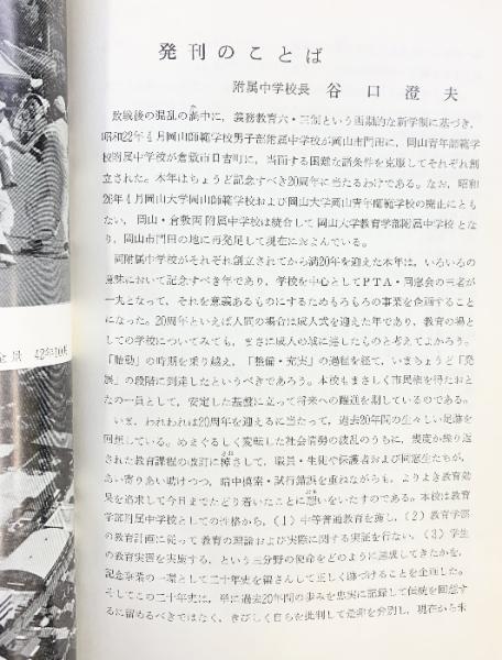 岡山大学教育学部附属中学校二十年史 岡山大学教育学部附属中学校 昭和42年 【非売品】