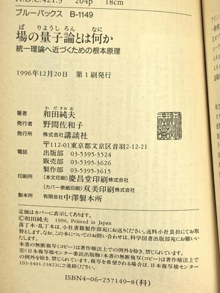 場の量子論とは何か: 統一理論へ近づくための根本原理 (ブルーバックス 1149) 講談社 和田 純夫