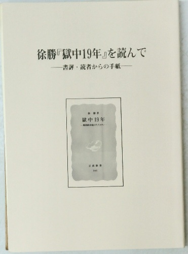 徐勝『獄中19年』を読んで 書評・読者からの手紙