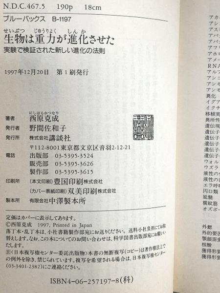 生物は重力が進化させた―実験で検証された新しい進化の法則 (ブルーバックス) 講談社 西原 克成