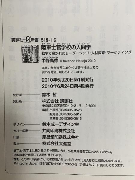 陸軍士官学校の人間学 戦争で磨かれたリーダーシップ・人材教育・マーケティング 講談社 中條 高徳