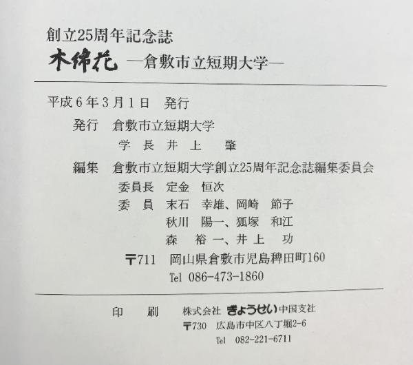 創立25周年記念誌『木綿花』倉敷市立短期大学 平成6年 (岡山県倉敷市)