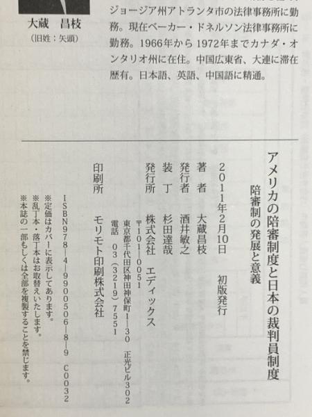 アメリカの陪審制度と日本の裁判員制度: 陪審制の発展と意義 エディックス 大蔵 昌枝