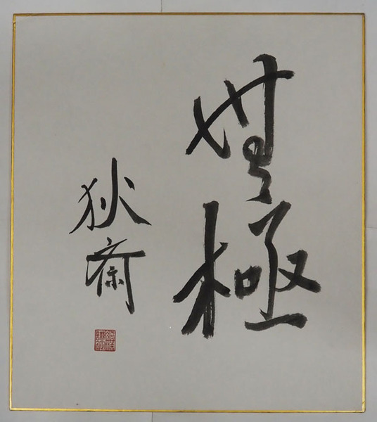 綱淵謙錠色紙 『無極』 毛筆書落款入「狄斎」は綱淵の号