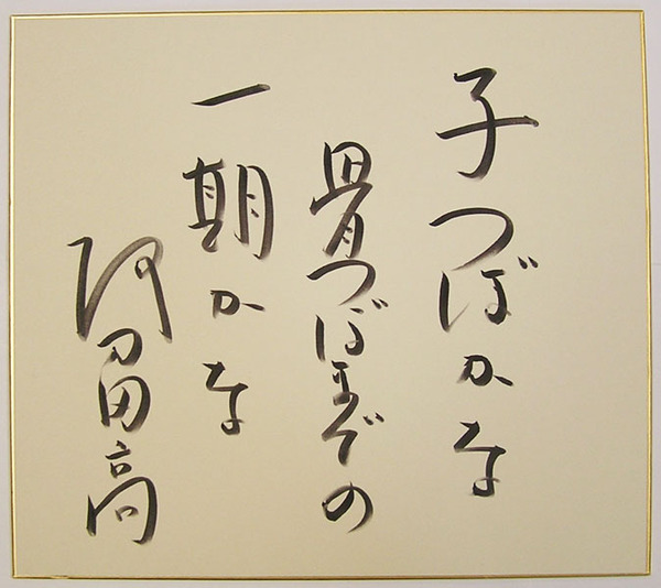 阿刀田高色紙 『子つぼかな骨つぼまでの一期かな』 筆ペン書 裏面に日付書入