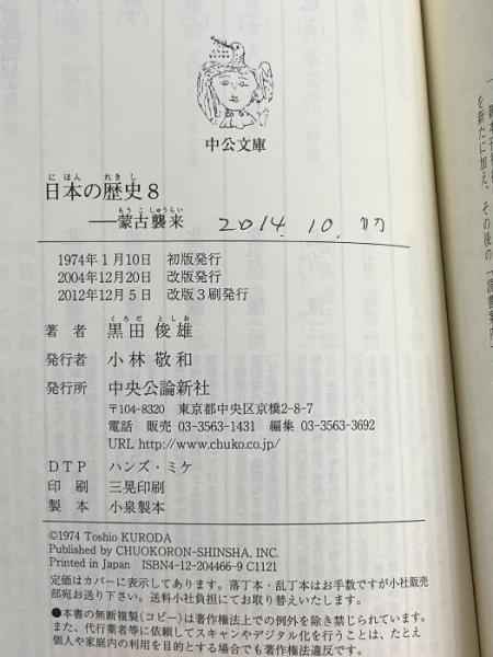 日本の歴史 蒙古襲来 (8) (中公文庫) 中央公論新社 黒田 俊雄