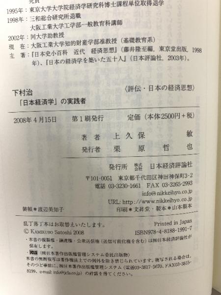 下村治: 「日本経済学」の実践者 (評伝・日本の経済思想) 日本経済評論社 上久保 敏