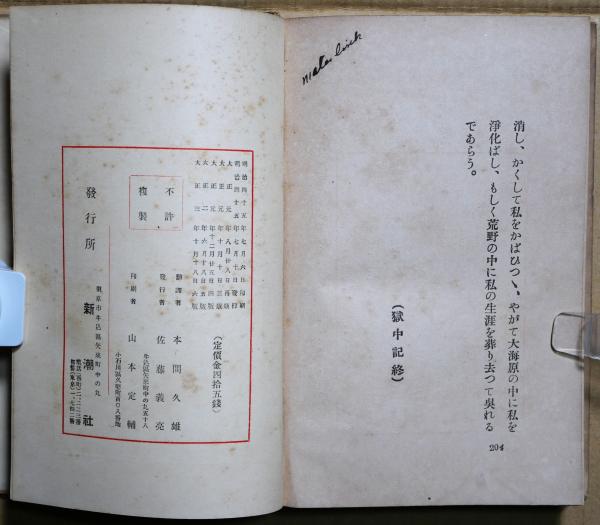 • 解説 6版 外装無し 最終頁記名 表紙天ヤケ 口絵の写真版はシエラルド氏のワイルド像の中から借用したものでワイルドの似顔という