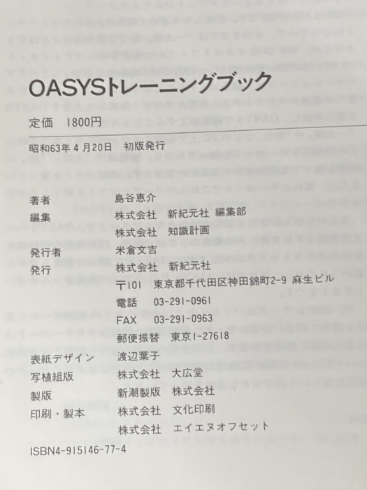 OASYSトレーニングブック 新紀元社 島谷 恵介