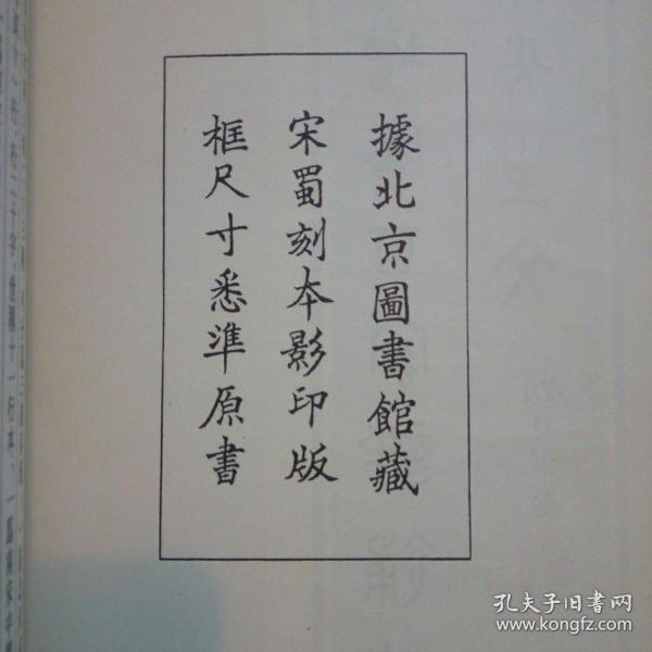 影印. 據北京圖書館藏宋蜀刻本影印版框尺寸悉準原書
