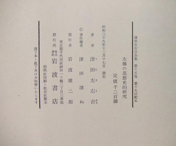 津田左右吉全集 第15巻 (左伝の思想史的研究)