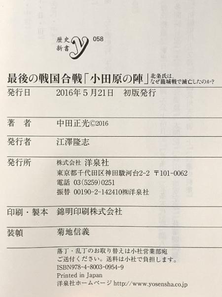 最後の戦国合戦「小田原の陣」 (歴史新書y 58) 洋泉社 中田 正光