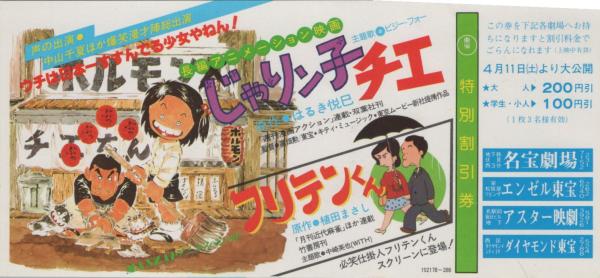 1047◆映画 特別割引券 じゃりン子チエ フリテンくん