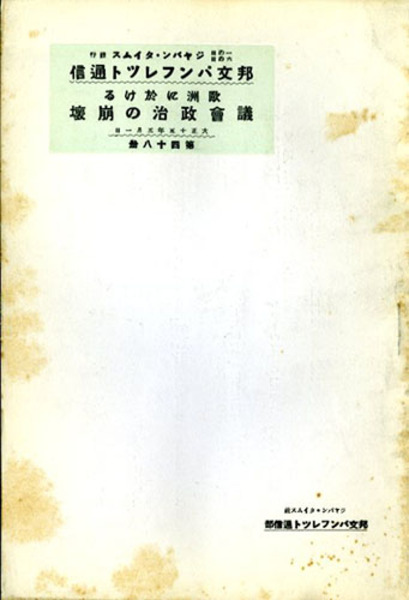 欧州に於ける議会政治の崩壊 邦文パンフレット通信48