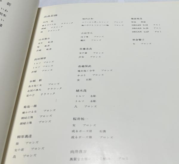 • 解説 展覧会図録 状態並良 約40頁の薄いもの 図版:木内克、高田博厚、本郷新、菊池一雄、堀内正和、植木茂、朝倉響子等15人の略歴と作品1図ずつ 20x20cm ソフトカバー