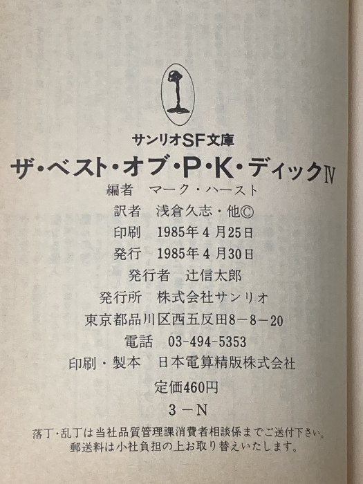 ※イタミ有 ザ・ベスト・オブ・P.K.ディック〈4〉 (1985年) (サンリオSF文庫)