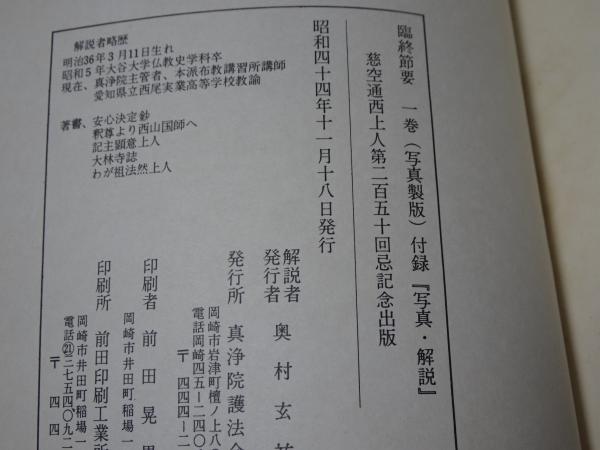 臨終節要 一巻(写真製版)付録「写真・解説」 慈空通西上人第二百五十回忌記念出版