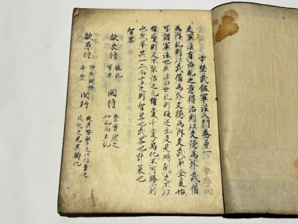 • 解説 巻一『軍法入門』 巻二『日用軍法』 巻三『練士』  巻四『選士』 巻五上下『城取』 巻六『出軍』  巻七上『最方角雲気』 巻七下『地形』 少虫損あり 発送方法:クリックポスト(国内送料無料)