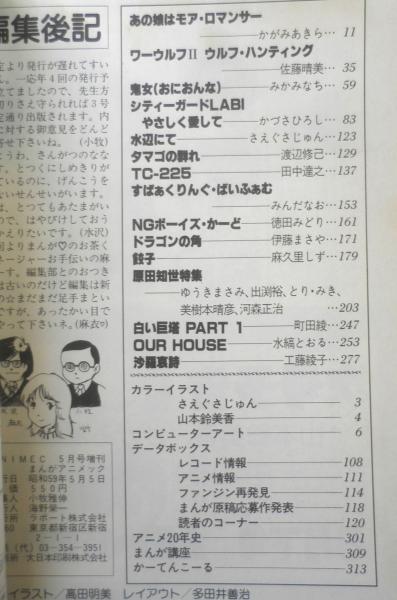 かがみあきら 佐藤晴美 みかみなち かづさひろし さえぐさじゅん 渡辺修己 田中達之 みんだなお 徳田みどり 伊藤まさや 万久里しず 町田綾 水縞とおる 工藤綾子 原田知世特集/ゆうきまさみ、出渕裕、とり・みき、美樹本晴彦、河森正治 カラーイラスト/さえぐさじゅん・山本鈴美香 他