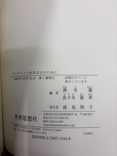 ライプニッツを学ぶ人のために 第1刷