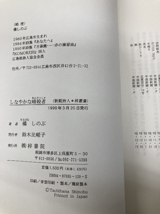 しなやかな暗殺者: 橘しのぶ詩集 (新鋭詩人梓叢書) 梓書院 橘しのぶ