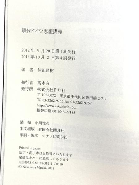 現代ドイツ思想講義 作品社 仲正 昌樹
