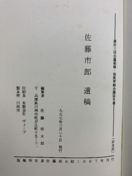 壽府・倫敦軍縮会議秘録 佐藤市郎:遺稿 佐藤信太郎:編集 1997年【非売品】