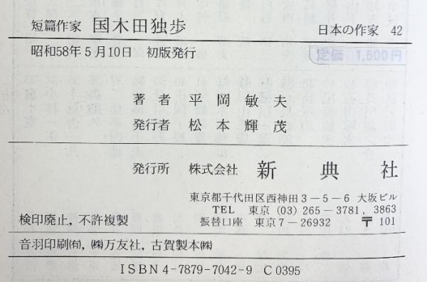 短篇作家 国木田独歩(日本の作家 42) 新典社 平岡 敏夫