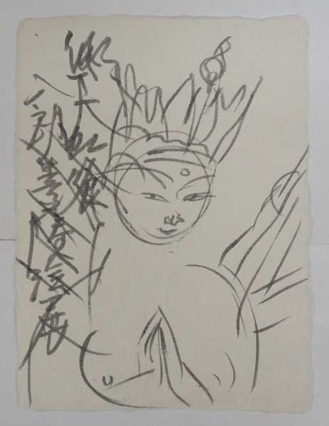 鈴木八朗小色紙 『飛天虹喰い八朗菩薩絵展』Sペン書菩薩絵 204×150ミリ