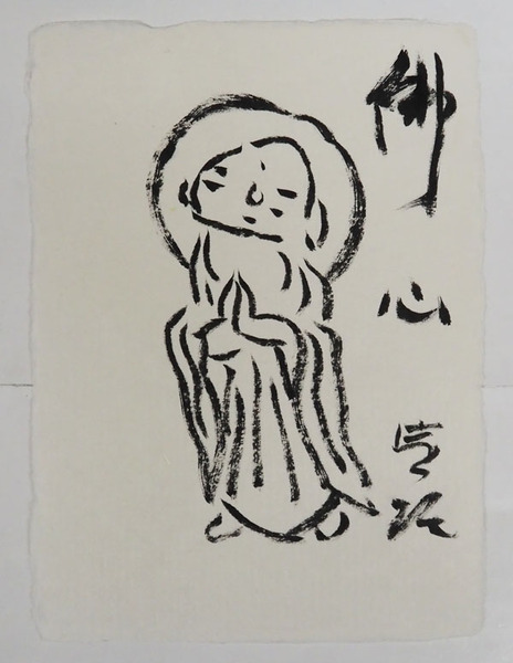 小島寅雄小色紙 『佛心』 毛筆書地蔵菩薩の絵 207×150ミリ