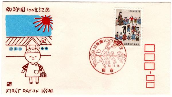 N26031146〇郵便切手 初日カバー 彩色木版画 幼稚園100年記念 FDC First Day of Issue 昭和51年○和本古書古文書