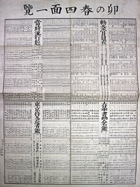 • 解説 50×37糎・少ヤケ 勅奏官員表・当時流行見立・大日本書画人名鑑・東京持丸長者鑑